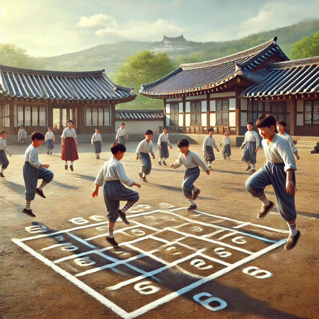 사방치기는 한국의 전통적인 야외 놀이 중 하나로, 마을 공터나 학교 운동장 등 넓은 바닥에 사각형 구역을 그려놓고 즐기던 놀이입니다. 이 놀이는 특별한 도구 없이도 쉽게 즐길 수 있었기 때문에 많은 아이들이 자유롭게 모여서 즐기곤 했습니다. 사방치기는 조선 시대부터 전해 내려온 놀이로, 신체를 크게 움직이지 않으면서도 균형 감각과 발놀림을 기를 수 있어 특히 어린이들 사이에서 인기가 많았습니다.